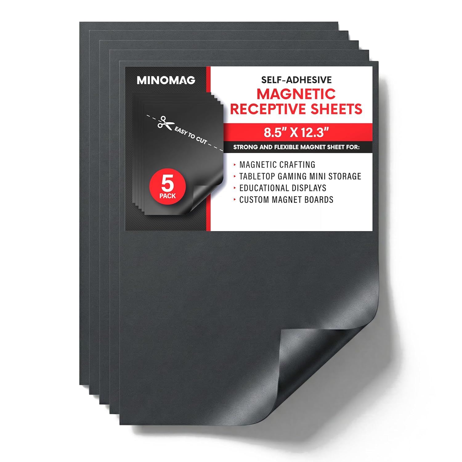 Magnet Receptive Ferrous Sheets with Strong Adhesive Backing, Flexible Rubber Sheet Metal for Arts, Crafts, Storage, Organization, 8.5” x 12.3” (Pack of 5)